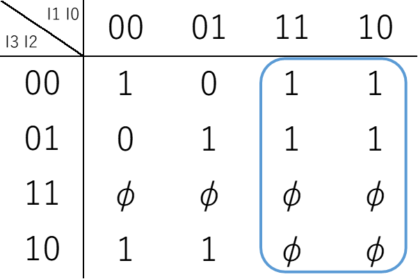 $$L_3 = I_3 + I_2 + \overline{I_1} + I_0$$